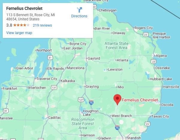 Family owed business with a history of standing behind the product we sell. Fernelius Chevrolet is here and available daily. Proud of the quality new and used cars we sell and dedicated to serve the needs of our customers. Come in and check out the new Chevrolet models. Full service dealership - sales, parts and service. Dedicated, friendly, knowledgeable sales team - here for our customer. GM authorized repair facility with ASE certified service technicians. Advanced technology and expertise in vehicle service. Free first oil change with purchase. Free Pick-up and Delivery for Service. Weekly service specials - to cover all your vehicle maintenance needs. Courtesy vehicles available - pickup and delivery available. Parts available for all GM makes and models including Pontiac, Hummers, Saturn, and Oldsmobile. Online parts orders. Centrally located in Mid-Michigan serving all of Michigan and the surrounding states. Passionate about our community (major contributor) - including local schools, local sports teams, local food bank, Relay for Life, Community events - county fairs and business expos.